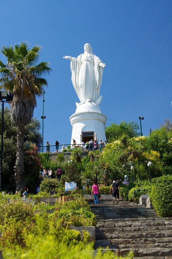 Luego tomaremos el teleférico para ascender hasta la cima del cerro, donde nos espera la icónica imagen de la Virgen y una de las vistas más hermosas de Santiago. Tendrás tiempo libre para contemplar el paisaje y, si lo deseas, disfrutar un tradicional mote con huesillo.